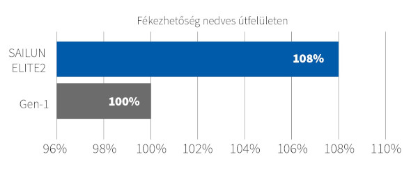 A továbbfejlesztett keverékképzési technológia révén optimális egyensúlyt sikerült teremteni a kopásállóság és a gördülési ellenállás között, és emellett a tapadás is nőtt.